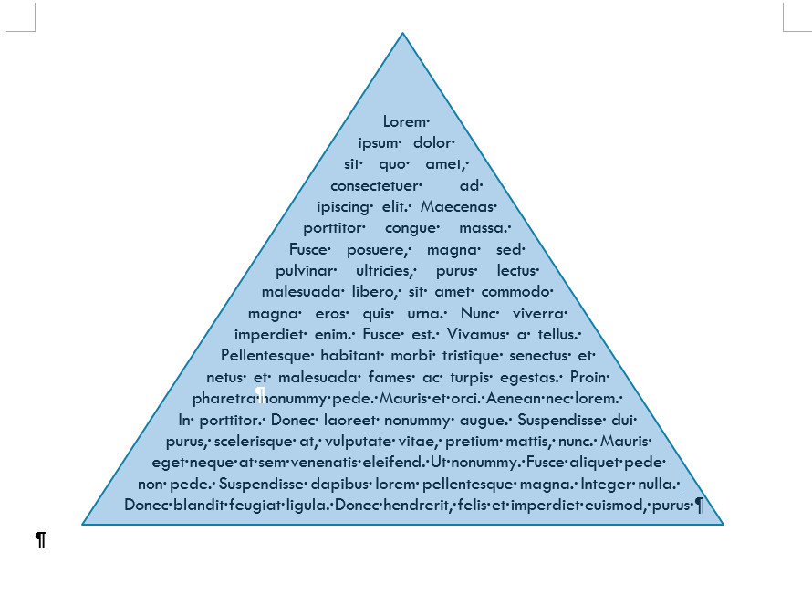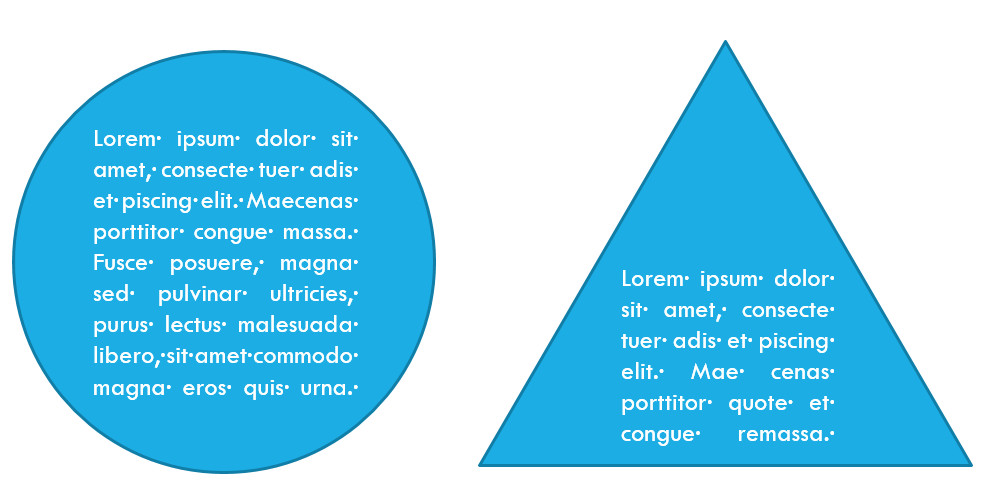 Au mieux, par défaut, si vous saisissez du texte à l'intérieur d'une forme automatique, quelle que soit la forme, le texte aura un format rectangulaire, comme ci-dessous. Donc en dehors d'une forme resctangulaire (ou carré), le résultat ne sera pas celui attendu.