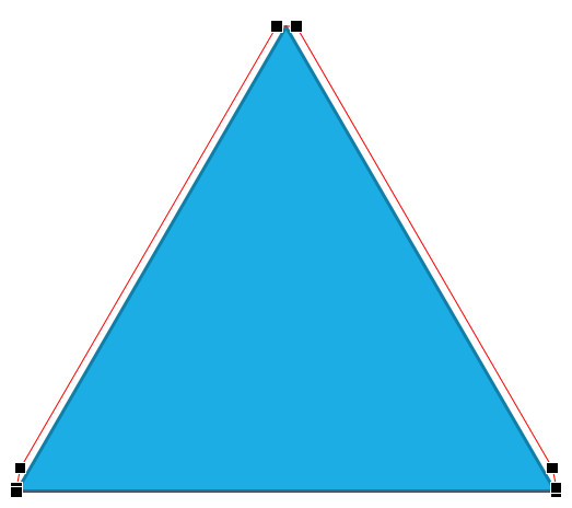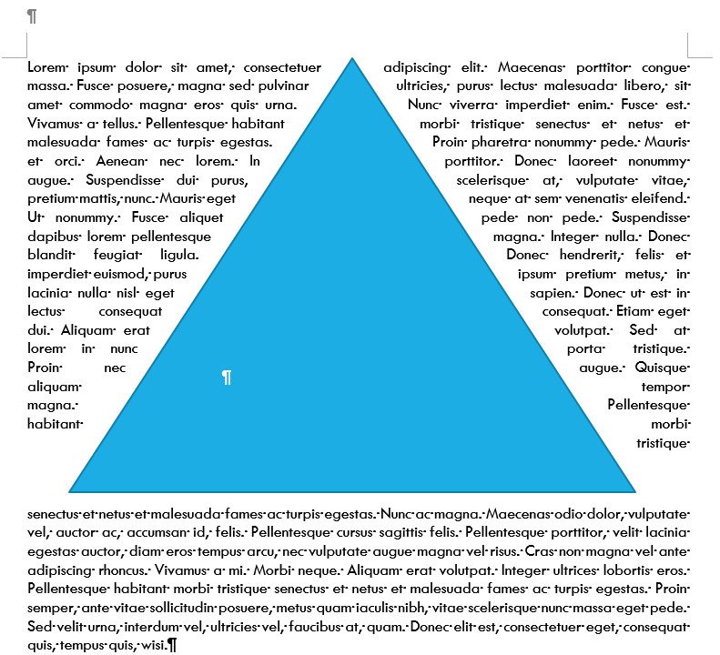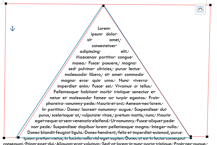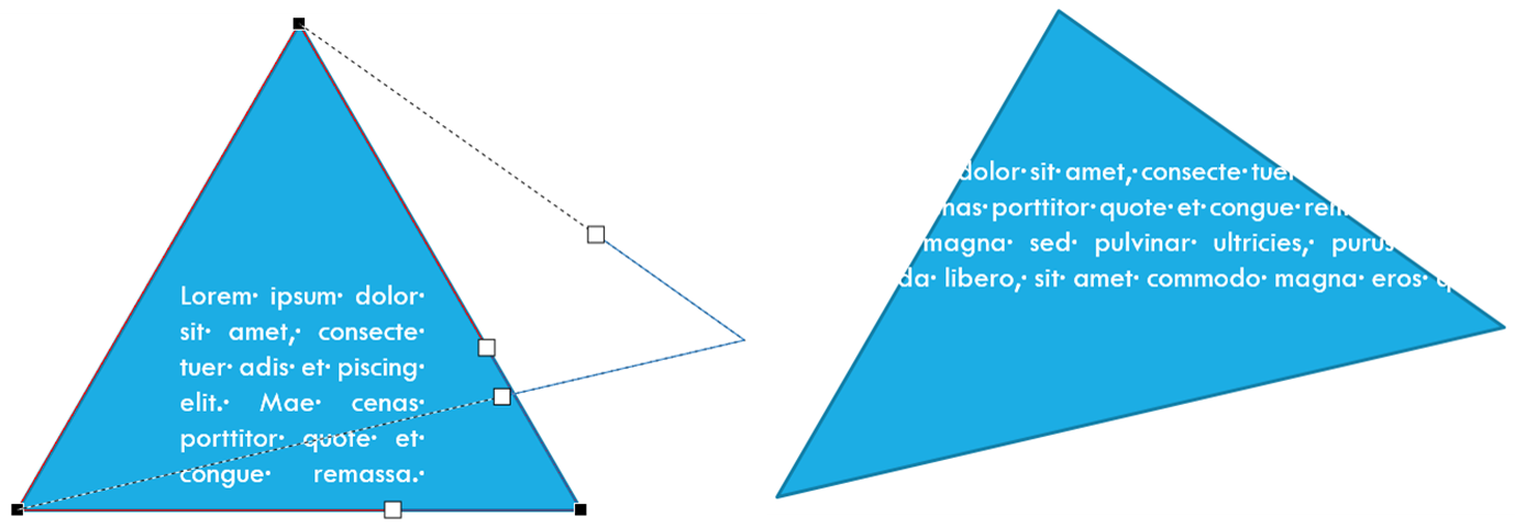 Et enfin dans cet exemple nous avons repoussé un point d'habillage vers la gauche, et le point d'habillege du bas vers le haut, à la pointe du triangle. Et on peut constater que le texte est bien rentré dans le triangle.