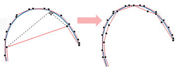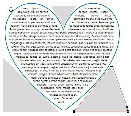 - Affichez à nouveau les points d'habillage des deux parties du coeur et déformez en déplaçant les points vers l'extérieur et en s'arrangeant pour que les points recouvrent le texte.