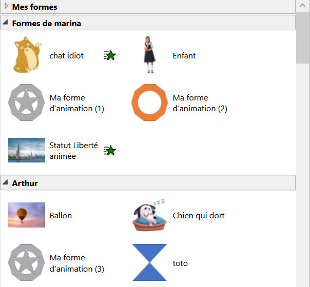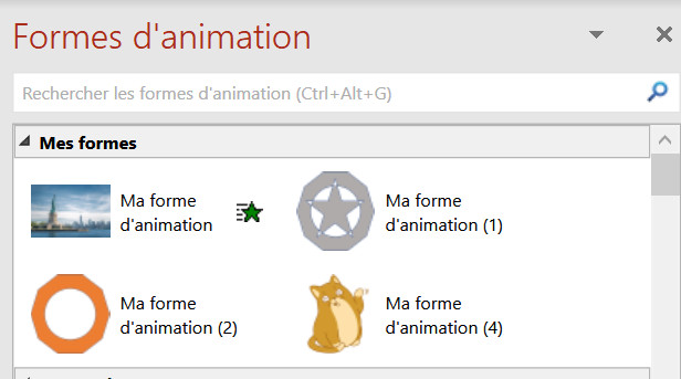 On peut effectivement imaginer une bibliothèque d'objets PowerPoint avec son propre choix de formes, d'animations, etc.