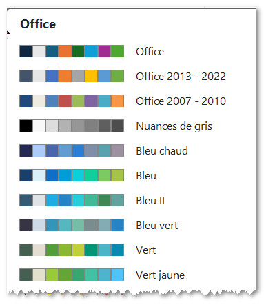 Notez que les objets provenant des autres applications Office (Word, Excel) prendront les couleurs du jeu de couleurs, mais uniquement pour les versions à partir de 2007.