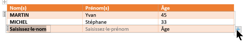 Dans un modèle de formulaire où se trouvent des contrôles de contenu Nom/Prénom à compléter, je souhaite que les utilisateurs puissent ajouter autant de lignes de noms que nécessaire.