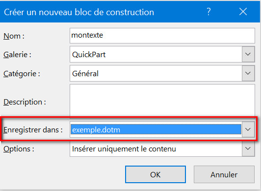 • Remplacez le nom du bloc de construction "montexte" par le vôtre.