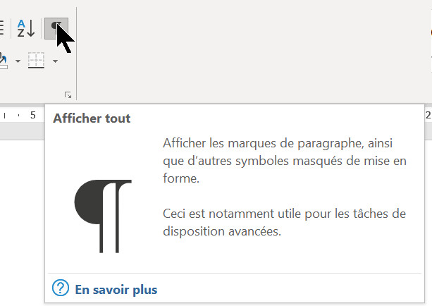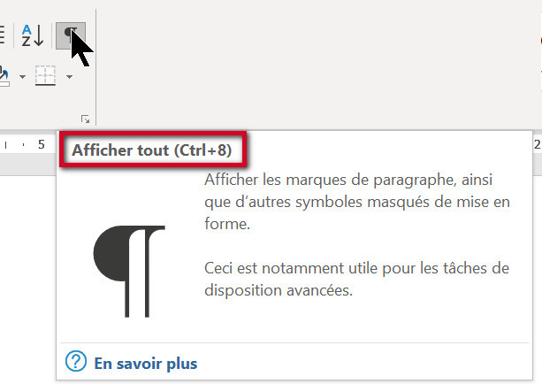 Depuis la version 2007, il est pratique de pointer la souris sur une commande du ruban ou de la barre d'outils Accès rapide afin d'obtenir l'indication sur cette commande ainsi que le raccourci clavier pour y accéder.