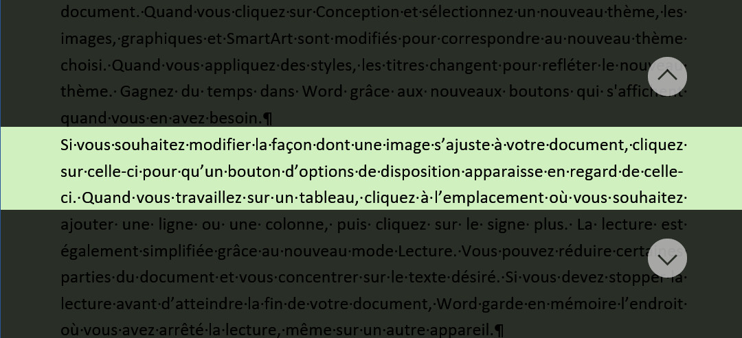Cela signifie que tout le document sera sombre, seules la ou les lignes Focus seront lisibles. Pour utiliser cette fonctionnalité :