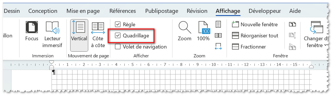 Word divise automatiquement les pages en une grille invisible, dont chaque case est définie par défaut à 0,32 cm. Les objets dessinés sont alignés sur la grille la plus proche. Cette fonction automatique est intitulée "Aligner sur la grille".