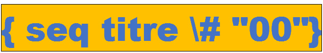 - Insérez le champ SEQ avec son identificateur, ici "titre", et ajoutez le commutateur \# "00" pour appliquer le format.