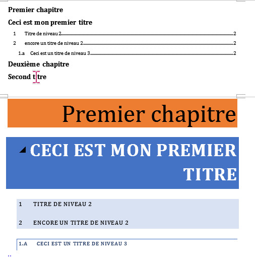 - Insérez un titre avec les deux styles comme expliqué ci-dessus.