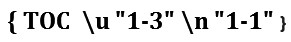 En revanche, vous allez faire manuellement la table des matières, car on souhaite ne pas avoir les numéros de page des titres et le style Numéro doit y être inclus. Donc appuyez sur Ctrl+F9, et complétez le champ de la manière suivante. Appuyez ensuite sur Alt+F9 pour afficher le résultat.