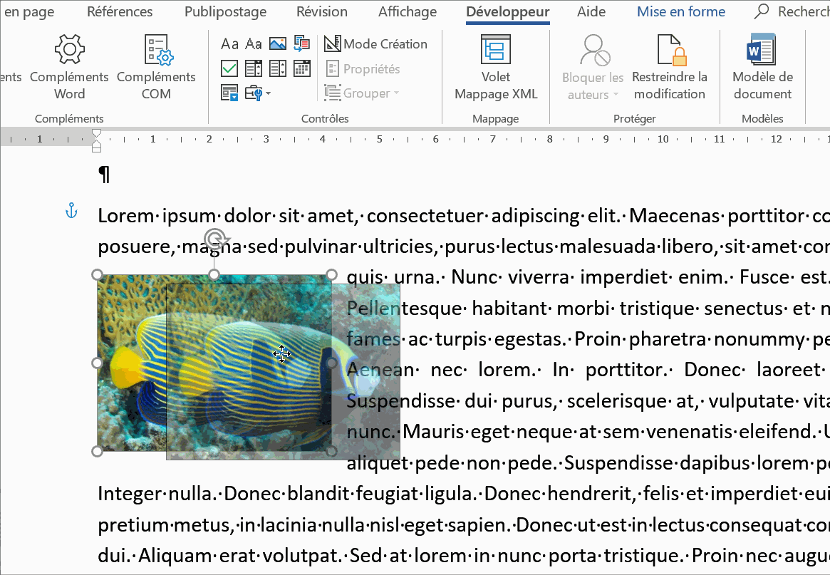 Comment insérer une image avec habillage sur une page et qu'on ne puisse plus la déplacer ?