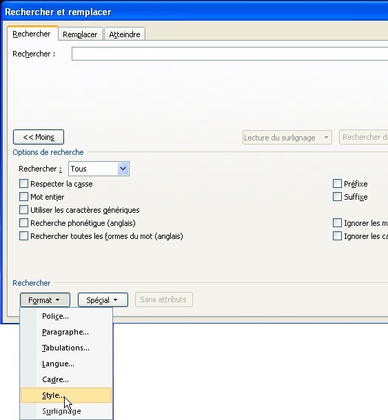 La fonction Recherche permet de choisir le style.