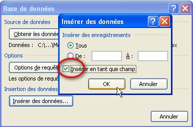 NB : Si Word affiche un message d'erreur disant qu'il ne peut insérer les données, pas de panique ! cliquer sur OK et voyez le paragraphe suivant...