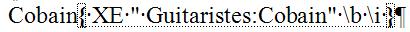 • Vous pouvez ajouter un attribut gras ou italique pour les numéros de page qui s'afficheront dans l'index, en cochant l'une de ces options (ou les deux) dans la rubrique Format des numéros de page de la boîte de dialogue Marquer les entrées d'index. Vous remarquerez dans ce cas que les commutateurs b et/ou i s'ajoutent au champ.