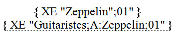 • Il est possible de créer plusieurs index dans un même document, on peut par exemple imaginer un index pour les auteurs et un index pour les œuvres. Dans ce cas, vous devrez ajouter dans chaque entrée d'index le commutateur \f suivi d'une lettre d'identification. Vous insérerez autant de fois l'index que vous avez de marquages différents. Dans chaque index, vous ajouterez ce même commutateur \f suivi de la lettre afin d'obtenir l'index correspondant à ce marquage.