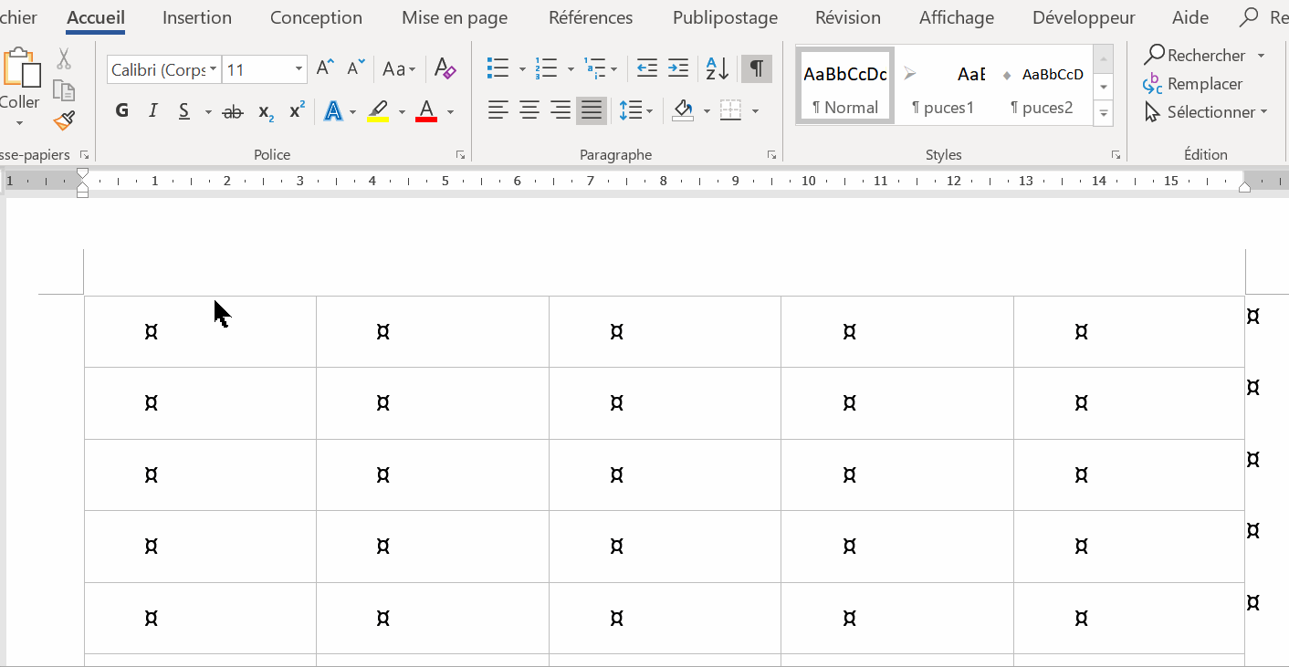 MsgBox "Mettre le point d'insertion dans un tableau"